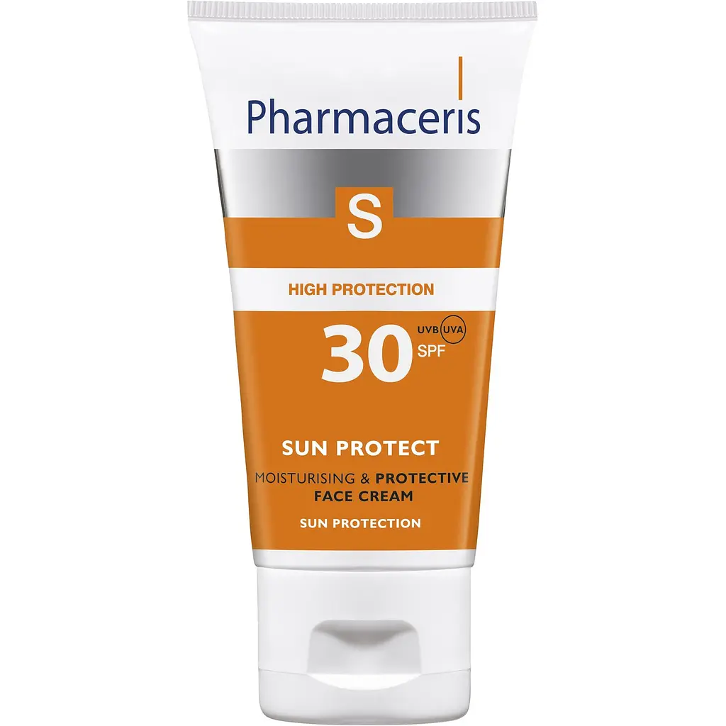 Зволожуючий сонцезахисний крем для обличчя Pharmaceris S Sun Protect SPF30 захистить від інтенсивного сонячного випромінювання, сонячних опіків і шкідливого впливу променів спектру UVA/UVB.