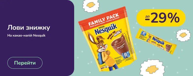 Добрий день, друзі! Рекомендую спробувати напій з какао NESQUIK. Це не тільки смачний, але і корисний продукт. Зокрема, напій покращує настрій завдяки відмінному смаку; стимулює мозкову діяльність; очищає організм і захищає від поширення вільних радикалів за рахунок антиоксидантних властивостей; зміцнює опірність до простудних захворювань за рахунок мінералів і вітамінів; вітаміни D та C сприяють нормальній роботі імунної системи; вітамін D сприяє нормальному засвоєнню кальцію. І головне - це смак мирного ранку, і для того, щоб якнайскоріше в усіх українців ранки були мирними, донатьмо на ЗСУ, разом наближаймо Перемогу!