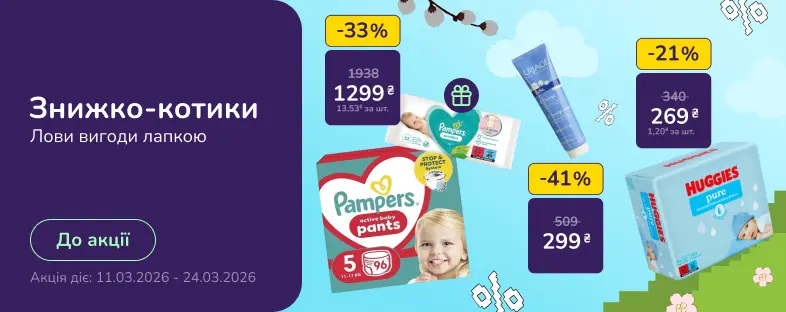 | Набор: подгузники-трусики Pampers Active Baby Pants 5 (12-17 кг) 96 шт. + детские влажные салфетки Pampers Sensitive 52 шт. в подарок | 1 218 ₴ |