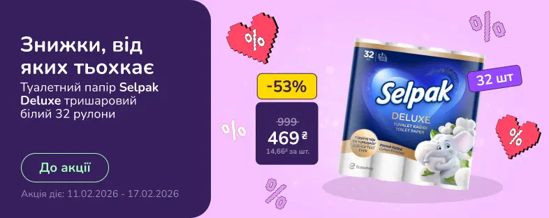 | Туалетная бумага Mildi Smart 2 слоя 100 отрывов 32 шт. | 265 ₴ |