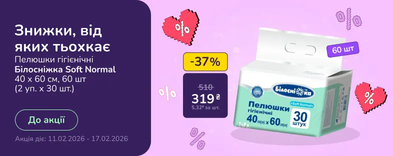 | Одноразовые пеленки гигиенические Белоснежка Компактные 90х60 см 60 шт. (2 по 30 шт.) | 558 ₴ |