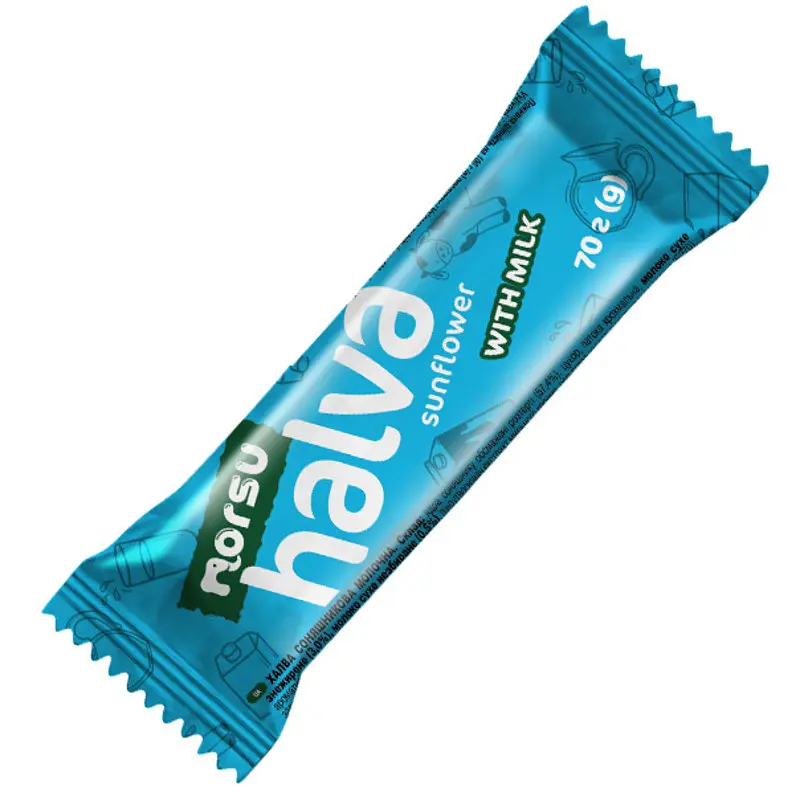 Халва подсолнечная Norsu молочная – это вкусный батончик из халвы со вкусом молока, изготовленный из натуральных семян подсолнечника.