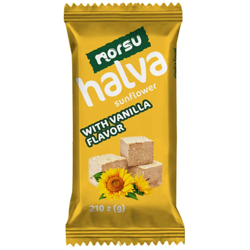 Халва подсолнечная Norsu с ароматом ванили изготовлена из натуральных подсолнечных семян и дополнена ароматом ванили.