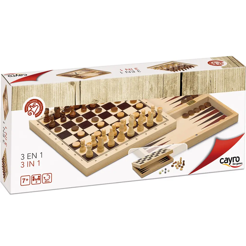 Настольная игра CAYRO 3 в 1: шахматы, шашки, нарды (648) – это увлекательное путешествие в мир интеллекта и стратегии. Эта необычная игра сочетает в себе три больших головоломки, открывающих перед вами бесконечные возможности для развития вашего мышления и тактических навыков.