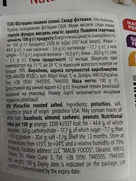 Ці фісташки вирізняє зіп-пакування і чудова якість. Вони не пересолені, відкриваються добре майже завжди, свіжі, пахнуть дуже приємно. Таку упаковку зручно брати з собою і тримати вдома про запас, і це радість для всіх любителів фісташок за прийнятною ціною.