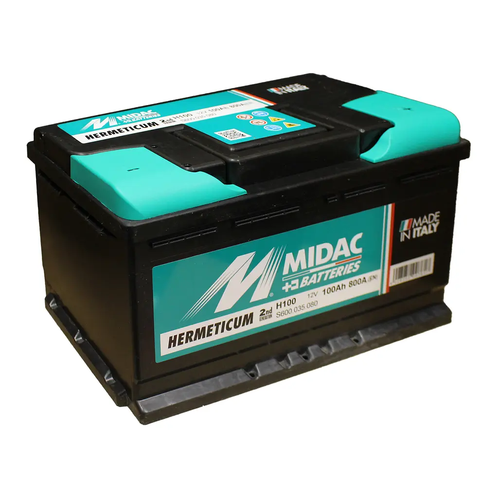 Итальянская компания Midac хорошо известная качеством своей продукции по всей Европе и за её пределами. Именно Midac - одна из первых аккумуляторных компаний, которая внедрила у себя новую технологию производства аккумуляторных пластин - Punching Greed Technology. Эта технология позволяет производить еще более качественные, надежные пластины для аккумуляторных батарей. Также это позволило повысить стартерные характеристики и увеличить показатель долговечности автомобильного аккумулятора. Аккумуляторы серии MIDAC HERMETICUM изготавливаются по технологии 'Кальций-Кальций' и не требуют обслуживания. Имеют низкий саморазряд по сравнению с традиционными аккумуляторами.Оборудованы двойной крышкой с лабиринтной системой, благодаря чему, испарившаяся вода из электролита в виде конденсата возвращается в аккумулятор. Таким образом исключается риск уменьшения уровня электролита и оголения рабочей поверхности пластины, а как следствие - снижение пусковых характеристик. Исходя из этих преимуществ, серия аккумуляторных батарей MIDAC HERMETICUM идеально подходит для отечественных условий эксплуатации. Отлично работает на иномарках с повышенным количеством электропотребителей. Имеет хорошие рабочие показатели при колебаниях температуры внешней среды. Благодаря специальной конструкции двойной крышки, батарея MIDAC HERMETICUM, при переворачивании на бок некоторое время не пропускает электролит, а также имеет надежную защиту от попадания искры внутрь батареи. Поэтому аккумуляторы MIDAC HERMETICUM конструктивно исключают возможность взрыва АКБ. Аккумулятор 6СТ-100A MIDAC HERMETICUM, 12V, 100Ah, R обладает еще одним преимуществом - укороченным размером моноблока (310х175х190мм). Это дает возможность устанавливать аккумулятор на автомобили, где необходим высокий пусковой ток, увеличенная емкость, однако размеры посадочного места не позволяют устанавливать стандартную 'сотку'. Сюда относятся VOLKSWAGEN Т4, Т5, RENAULT Traffic, OPEL Vivaro и др. Обладая всеми этими преимуществами серия аккумуляторных батарей MIDAC HERMETICUM еще и очень демократична по стоимости. Если Вы хотите надежный и долговечный аккумулятор - Аккумулятор 6СТ-100A MIDAC HERMETICUM, 12V, 100Ah, R - это то, что Вам нужно.