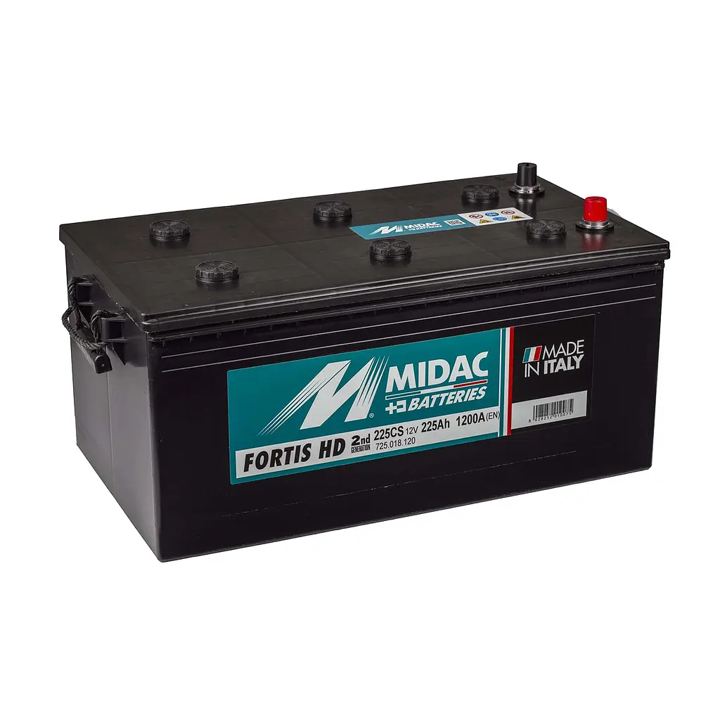 Итальянская компания Midac хорошо известная качеством своей продукции по всей Европе и за её пределами. Именно Midac - одна из первых аккумуляторных компаний, которая внедрила у себя новую технологию производства аккумуляторных пластин - Punching Greed Technology. Эта технология позволяет производить еще более качественные, надежные пластины для аккумуляторных батарей. Также это позволило повысить стартерные характеристики и увеличить показатель долговечности автомобильного аккумулятора. Аккумуляторы серии MIDAC FORTIS изготавливаются по технологии 'Кальций-Кальций' и не требуют обслуживания. Таким образом исключается риск уменьшения уровня электролита и оголения рабочей поверхности пластины, а как следствие - снижение пусковых характеристик. Имеют низкий саморазряд по сравнению с традиционными аккумуляторами. Большее количество пластин в каждой из шести ячеек аккумулятора MIDAC FORTIS обеспечивает на 30 процентов большую пусковую мощность по сравнению со стандартными батареями. Это позволяет без труда запускать двигатель даже в самый суровый мороз. В аккумуляторах MIDAC FORTIS пластины помещены в стекловолоконные сепараторные конверты, что исключает короткое замыкание и препятствует осыпанию активной массы пластин, а также обеспечивает высокую устойчивость к вибрациям и ударам. Исходя из этих преимуществ, серия аккумуляторных батарей MIDAC FORTIS идеально подходит для работы на магистральных тягачах, сельхозтехнике, спецтехнике. Аккумуляторы данной серии рекомендованы для работы на транспорте повышенным количеством электропотребителей. Имеют хорошие рабочие показатели при колебаниях температуры внешней среды. Акумуляторные батареи MIDAC FORTIS также имеют надежную защиту от попадания искры внутрь батареи, поэтому конструктивно исключают возможность взрыва АКБ. Аккумулятор MIDAC FORTIS 6СТ-200 идеально подходит для магистральных крупнотоннажных тягачей. За счет применения аккумуляторных пластин из кальциевого сплава в аккумуляторе MIDAC FORTIS 6СТ-200 практически исключен расход воды. Это очень важно для эксплуатации в тяжелых условиях, ведь не всегда есть возможность проверить уровень электролита. АКБ MIDAC FORTIS 6СТ-200 уверенно работает как при частых запусках двигателя, так и в режимах нагрузки не стартерного типа (длительные стоянки тягачей на автономке, обилие электропотребителей). Основные преимущества АКБ MIDAC FORTIS 6СТ-200: Увеличенная емкость 200 Ач при стандарнтных размерах 513х223х223мм(у всех других производителей стандартная емкость 190-192 Ач); Повышенные пусковые токи; Низкий саморазряд; Виброустойчивость;Отличные показатели во время циклов заряд-разряд.
