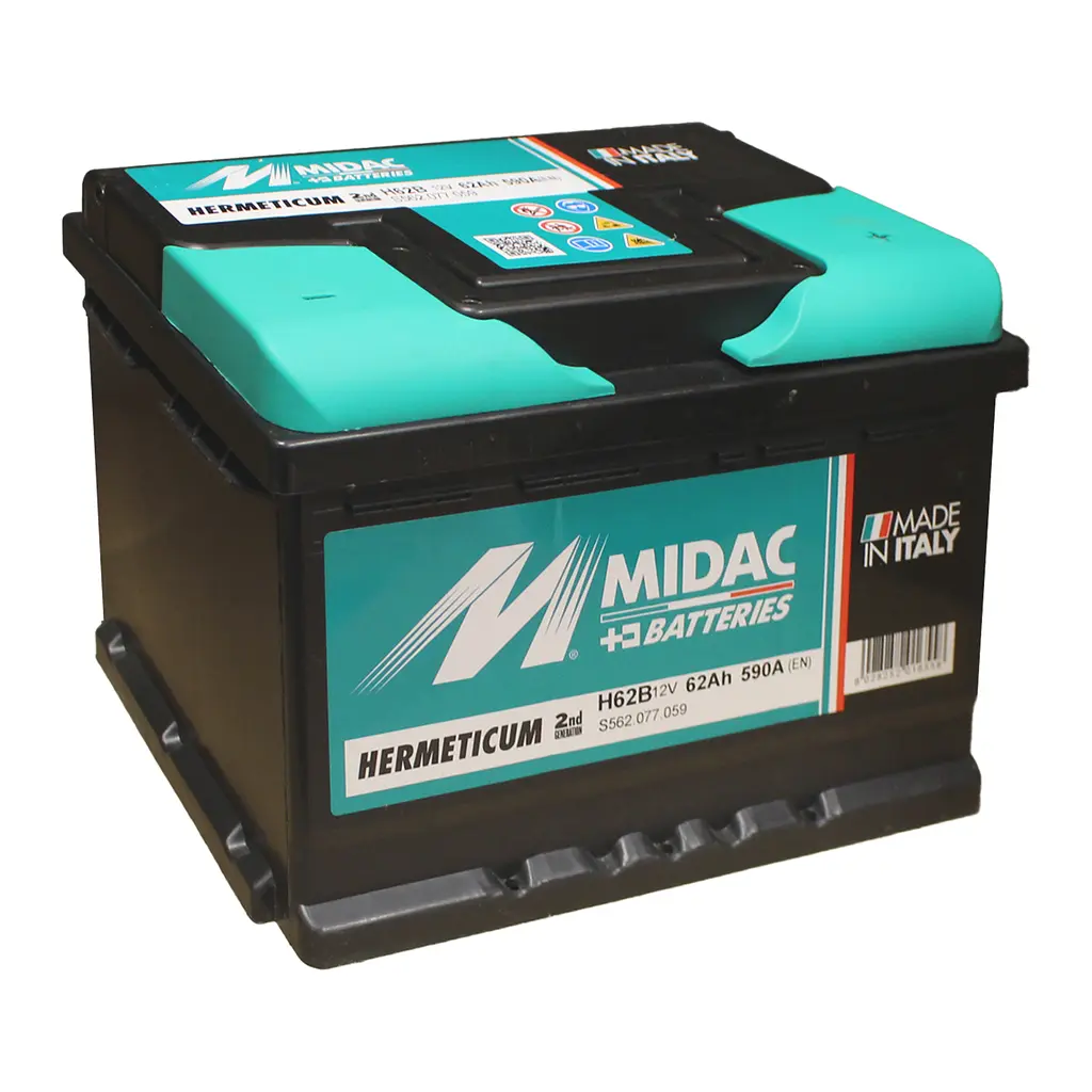 Итальянская компания Midac хорошо известная качеством своей продукции по всей Европе и за её пределами. Именно Midac - одна из первых аккумуляторных компаний, которая внедрила у себя новую технологию производства аккумуляторных пластин - Punching Greed Technology. Эта технология позволяет производить еще более качественные, надежные пластины для аккумуляторных батарей. Также это позволило повысить стартерные характеристики и увеличить показатель долговечности автомобильного аккумулятора. Аккумуляторы серии MIDAC HERMETICUM изготавливаются по технологии 'Кальций-Кальций' и не требуют обслуживания. Имеют низкий саморазряд по сравнению с традиционными аккумуляторами. Оборудованы двойной крышкой с лабиринтной системой, благодаря чему, испарившаяся вода из электролита в виде конденсата возвращается в аккумулятор. Таким образом исключается риск уменьшения уровня электролита и оголения рабочей поверхности пластины, а как следствие - снижение пусковых характеристик.Исходя из этих преимуществ, серия аккумуляторных батарей MIDAC HERMETICUM идеально подходит для отечественных условий эксплуатации. Аккумуляторы данной серии рекомендованы для работы на иномарках с повышенным количеством электропотребителей. Имеет хорошие рабочие показатели при колебаниях температуры внешней среды. Благодаря специальной конструкции двойной крышки, батарея MIDAC HERMETICUM, при переворачивании на бок некоторое время не пропускает электролит, а также имеет надежную защиту от попадания искры внутрь батареи. Поэтому аккумуляторы MIDAC HERMETICUM конструктивно исключают возможность взрыва АКБ. Аккумулятор 6СТ-62A MIDAC HERMETICUM, 12V, 62Ah, R собран в низком корпусе (244х175х175мм) и обладает высоким пусковым током и хорошим запасом емкости.АКБ данного типа является штатным для автомобилей FORD, а в отечественных условиях идеально подходит для работы на автомобилях: SKODA OPEL VOLKSWAGEN MERCEDES AUDI RENAULT PEUGEOT CITROEN.Покупая аккумулятор Аккумулятор 6СТ-62A MIDAC HERMETICUM, 12V, 62Ah, R Вы получаете на 30% большую мощность запуска и итальянскую надежность.
