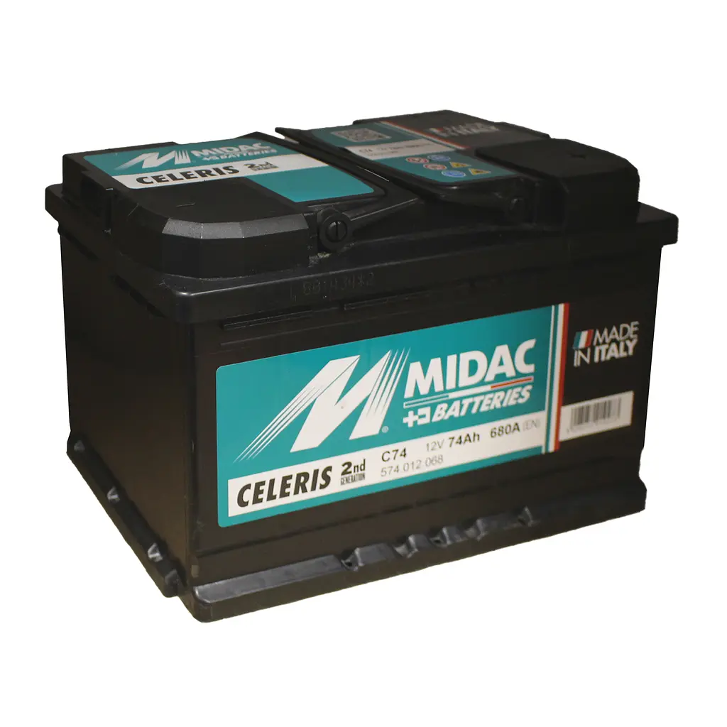 Итальянская компания Midac хорошо известная качеством своей продукции по всей Европе и за её пределами. Именно Midac - одна из первых аккумуляторных компаний, которая внедрила у себя новую технологию производства аккумуляторных пластин - Punching Greed Technology. Эта технология позволяет производить еще более качественные, надежные пластины для аккумуляторных батарей. акже это позволило повысить стартерные характеристики и увеличить показатель долговечности автомобильного аккумулятора. Аккумуляторы серии MIDAC CELERIS изготавливаются по технологии 'Кальций-Кальций' и практически не требуют обслуживания. Имеют низкий саморазряд по сравнению с традиционными аккумуляторами. Исходя из этих преимуществ, серия аккумуляторных батарей MIDAC CELERIS идеально подходит для отечественных условий эксплуатации. Есть возможность проверить состояние каждой 'банки' в АКБ. Подходит для эксплуатации на отечественных автомобилях. Отлично работает на иномарках с повышенным количеством электропотребителей. Имеет хорошие рабочие показатели при колебаниях температуры внешней среды. Благодаря специальной конструкции крышки, батарея MIDAC CELERIS, при переворачивании на бок некоторое время не пропускает электролит. Аккумулятор Аккумулятор 6СТ-74A MIDAC CELERIS, 12V, 74Ah, R имеет стандартные размеры (242х175х190мм) и обладает высоким пусковым током и хорошим запасом емкости. Данный АКБ является штатным для иномарок с объемами двигателя от 2,0 до 3,0 л (бензиновые) и для дизелей объемом до 2,2 л.: SKODA VOLKSWAGEN MERCEDES AUDI RENAULT PEUGEOT CITROEN АКБ MIDAC CELERIS 6СТ-74 (0) именно с полярностью 'ЕВРО' удобен для установки на малотоннажные автомобили для бизнеса ГАЗель, СОБОЛЬ. С недавнего времени, аккумуляторами с полярностью (0) 'евро' начали комплектоваться автомобили CHEVROLET CAPTIVA. Обладая всеми этими преимуществами серия аккумуляторных батарей MIDAC CELERIS еще и очень демократична по стоимости. И совмещает в себе разумное соотношение цена/качество.
