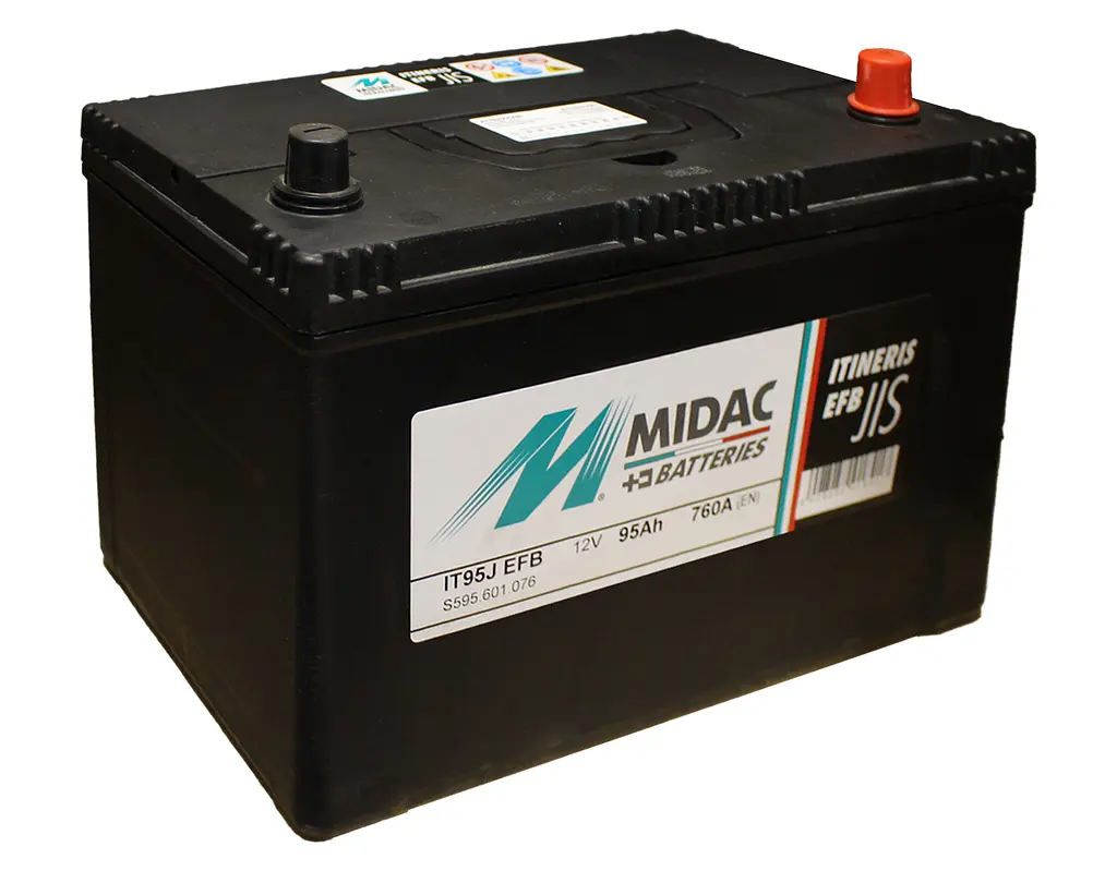 Итальянская компания Midac хорошо известная качеством своей продукции по всей Европе и за её пределами. Именно Midac - одна из первых аккумуляторных компаний, которая внедрила у себя новую технологию производства аккумуляторных пластин - Punching Greed Technology. Эта технология позволяет производить еще более качественные, надежные пластины для аккумуляторных батарей. Также это позволило повысить стартерные характеристики и увеличить показатель долговечности автомобильного аккумулятора.Серия аккумуляторных батарей MIDAC ITINERIS EFB STOP & START Asia разработана и производится с учетом высочайших требований к качеству, которые предъявляются азиатскими производителями автомобилей.АКБ MIDAC ITINERIS EFB Asia полностью соответствуют японскому стандарту JIS.Аккумуляторы серии MIDAC ITINERIS EFB изготавливаются по технологии 'Кальций-Кальций' и не требуют обслуживания.Имеют низкий саморазряд по сравнению с традиционными аккумуляторами.Отлично работают на иномарках с повышенным количеством электропотребителей.Имеют хорошие рабочие показатели при колебаниях температуры внешней среды.Благодаря специальной конструкции моноблока, батарея MIDAC ITINERIS EFB- STOP & START Asia, при случайном опрокидывании не пропускает электролит, а также имеет надежную защиту от попадания искры внутрь батареи. Поэтому аккумуляторы MIDAC ITINERIS EFB- STOP & START Asia конструктивно исключают возможность взрыва АКБ.Аккумулятор 6СТ-95A MIDAC ITINERIS EFB- STOP & START Asia, 12V, 95Ah, L собран в корпусе 303х170х225мм и является полным аналогом самого распространенного азиатского типоразмера 105D31R с прямой полярностью (плюс слева - определяется когда батарея повернута клеммами ближе к Вам).(Как определить тип корпуса и полярность аккумулятора читайте ).АКБ данного типа и с данной полярностью входят в базовую комплектацию некоторых моделей японских автомобилей: MITSUBISHI, TOYOTA, SUBARU, а также на весь модельный ряд корейского автозавода SSANG YONGАккумулятор 6СТ-95A MIDAC ITINERIS EFB, 12V, 95Ah, Rимеет тип крепления В01 (бортик снизу для фиксации АКБ прижимной планкой), что соответствует штатному креплению на корейских автомобилях KIA, HYUNDAI, SSANG YONG.Аккумулятор 6СТ-95A MIDAC ITINERIS EFB, 12V, 95Ah, Lкак применимый аналог на импортную сельхозтехнику: John Deere, CLAAS, CASE, New Hollan.Аккумулятор 6СТ-95A MIDAC ITINERIS EFB Asia, 12V, 95Ah, R также может использоваться в качестве стартерной группы на катерах и другом водном транспорте.Согласно азиатскому стандарту, клеммы Аккумулятора 6СТ-95A MIDAC ITINERIS EFB Asia, 12V, 95Ah, R не утоплены в крышку АКБ, поэтому идеально подходят для подключения к электросистеме Вашего авто.Если Вы приобретаете Midac, то получаете продукт, вместивший в себе все передовые технологии, позволяющие не думать об аккумуляторе, как таковом.