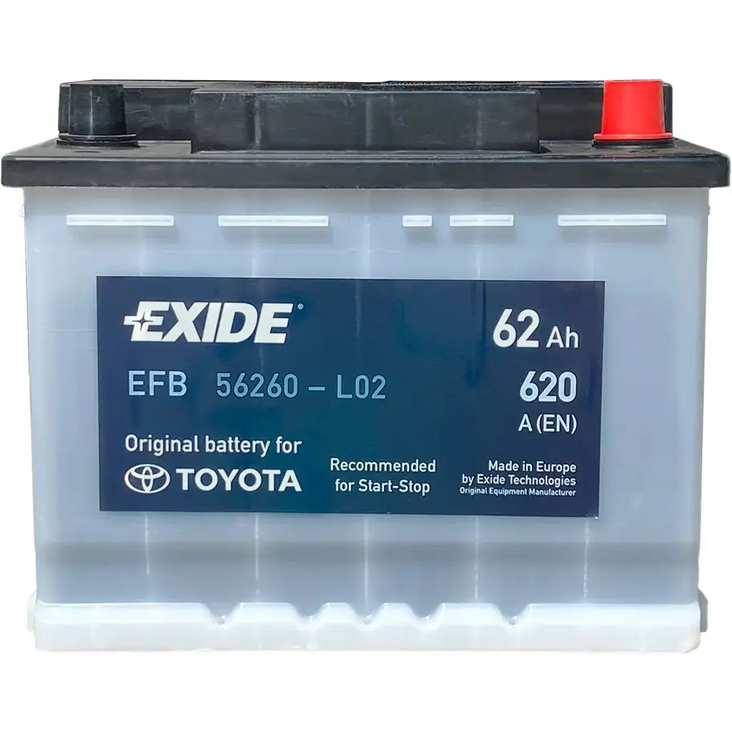 Батарея сделана по технологии EFB, что подходит для автомобилей с системой START-STOP и помогает снизить расход топлива в вашем автомобиле. Это полностью необслуживаемый АКБ. То есть вы ставите его один раз и дальше не беспокоитесь о работоспособности на весь срок службы (исключение - дополнительный заряд по индивидуальной потребности). Срок эксплуатации Exide EFB увеличен в 3 раза, по сравнению с обычными свинцово-кислотными. АКБ более устойчива к вибрациям и имеет высокую пусковую мощность. В том числе аккумулятор хорошо себя показывает и при низких температурах.