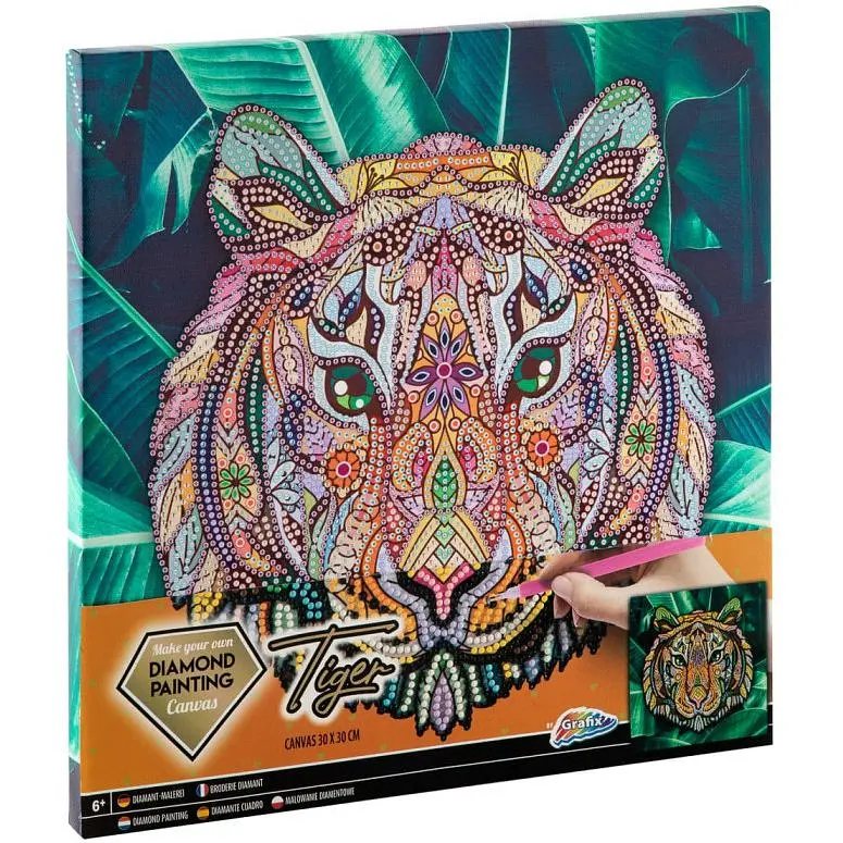 Алмазная роспись сочетает в себе бисероплетение и раскрашивание с точным размещением маленьких блестящих бриллиантов на предварительно напечатанном мотиве. Создайте красивый блестящий пиксельный мотив красочного тигра с помощью Grafix Make Your Own Diamond Painting Canvas! Здесь вы найдете все, что вам нужно, чтобы начать заниматься жемчужным искусством.