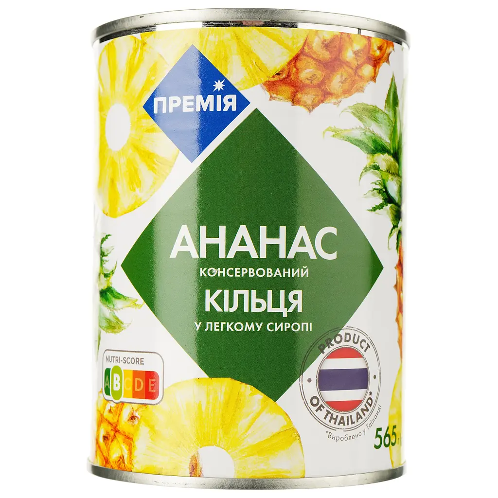 Ананас кольцами Премія в легком сиропе - изумительное лакомство, отличающееся тонким ароматом и нежным вкусом. Поспевая в теплых лучах ласкового солнца отличаются не только своим идеальным видом и вкусом, но и полезными свойствами, которые приумножаются за счет чистого района произрастания. Ароматная заготовка идеальна для употребления в чистом виде или для включения в состав выпечки и других десертов.