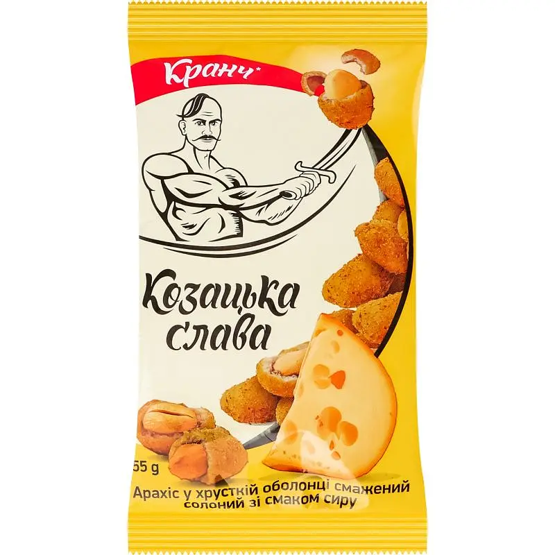 Арахис Козацька слава в хрустящей оболочке жареный соленый со вкусом сыра - вкусный и питательный снек, который можно употреблять как самостоятельно, так и вместе с пивом.
