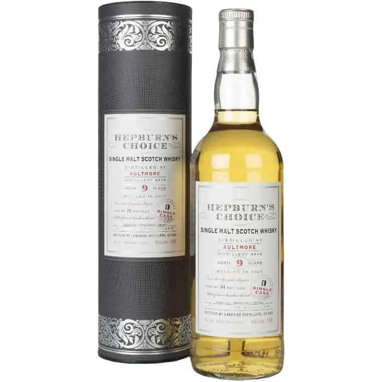 Виски Aultmore 9 Years Old - Hepburn’s Choice однобочковый релиз, выдержанный в бочке из-под бурбона. Ваниль, марципан, нотами солода и дуба.