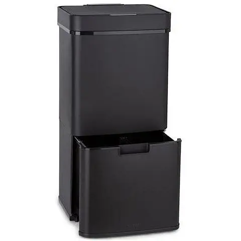 Со своим просторным 72-литровым внутренним пространством, Klarstein Royal Trash предлагает большой 43-литровый бак для мусорных пакетов и два 12,5-литровых контейнера для переработки. Это позволяет разделять крупногабаритные отходы, обычные отходы и бумагу непосредственно после утилизации. Интегрированное 4-литровое ведро для органических отходов особенно практично и имеет крышку для дополнительного контроля запаха. Наполнение верхнего бака происходит полностью бесконтактно: датчик крышки автоматически открывает бак, как только вы приближаетесь примерно на 20 см к радиусу действия датчика. Через пять секунд после выброса отходов крышка автоматически закрывается. При необходимости крышку можно открывать и закрывать вручную нажатием кнопки. Два 12,5-литровых контейнера для переработки размещены в ящике на роликовых подшипниках и двигаются вперед и назад простым нажатием ручки. Royal Trash Matte Black также визуально привлекателен; его гладкий корпус из нержавеющей стали не только элегантн, но и устойчив к отпечаткам пальцев. Индикаторные лампы на панели управления надежно отражают состояние датчика и уровень заряда батареи, а механизм SoftClose Lid обеспечивает особенно тихое открывание и закрывание. Контейнер для остаточных отходов сенсорного контейнера Klarstein также оснащен зажимным кольцом, которое фиксирует вкладыш для контейнера.