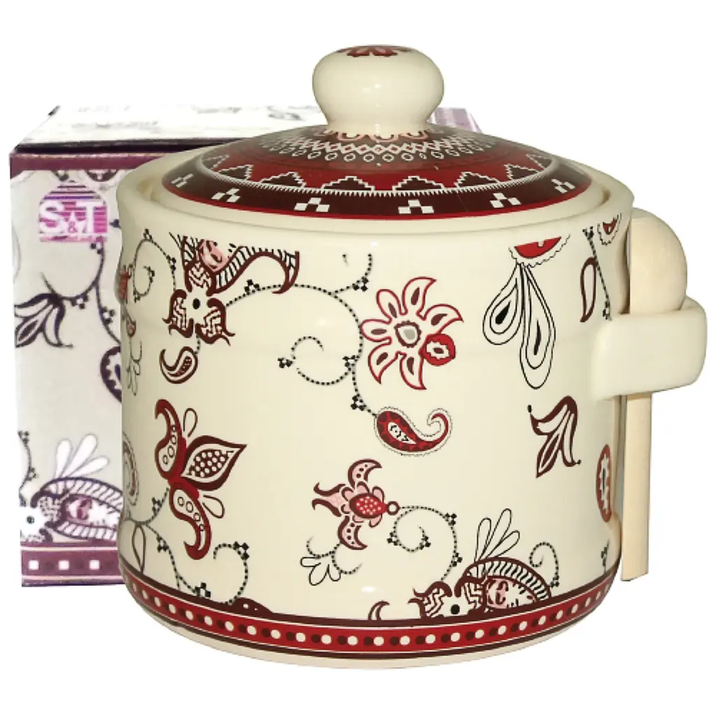 Банка для меда с деревянной ложкой SnT (СнТ) Орнамент позволит удобно и качественно хранить мед, ведь крышка обеспечивает ему свежесть, защищает от солнечных лучей и пыли.