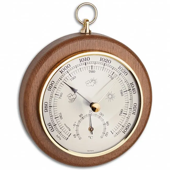 Производитель: TFA Dostmann GmbH & Co.KG, ГерманияОсобенности:Сделано в ГерманииКлассический метеоприборБарометр для местного прогноза погодыТермометр для контроля комнатной температурыТвердая древесинаГарантия 3 годаКлассический прибор из массива дерева состоит из барометра и термометра. Этот полезный инструмент измеряет атмосферное давление и позволяет составлять местный прогноз погоды. С увеличением давления воздуха погода улучшается, а с уменьшением давления воздуха следует ожидать ухудшения погоды. Барометр сначала настраивается в соответствии с атмосферным давлением в вашем регионе. Информацию об этом можно получить в местной метеослужбе, в Интернете, по показаниям эталонных приборов, установленных в общественных зданиях и т.п. Контролируя температуру в помещении, вы можете создать комфортный климат в помещении и сэкономить на расходах на отопление. Метеоприбор полностью произведен в Германии.Основным элементом TFA является собственное производство механических метеоинструментов. TFA создает продукцию, соответствующую этикетке «Сделано в Германии», с использованием самых современных технологий производства и традиционного ремесленного мастерства. Продукция от TFA убеждает своей функциональностью и дизайном.