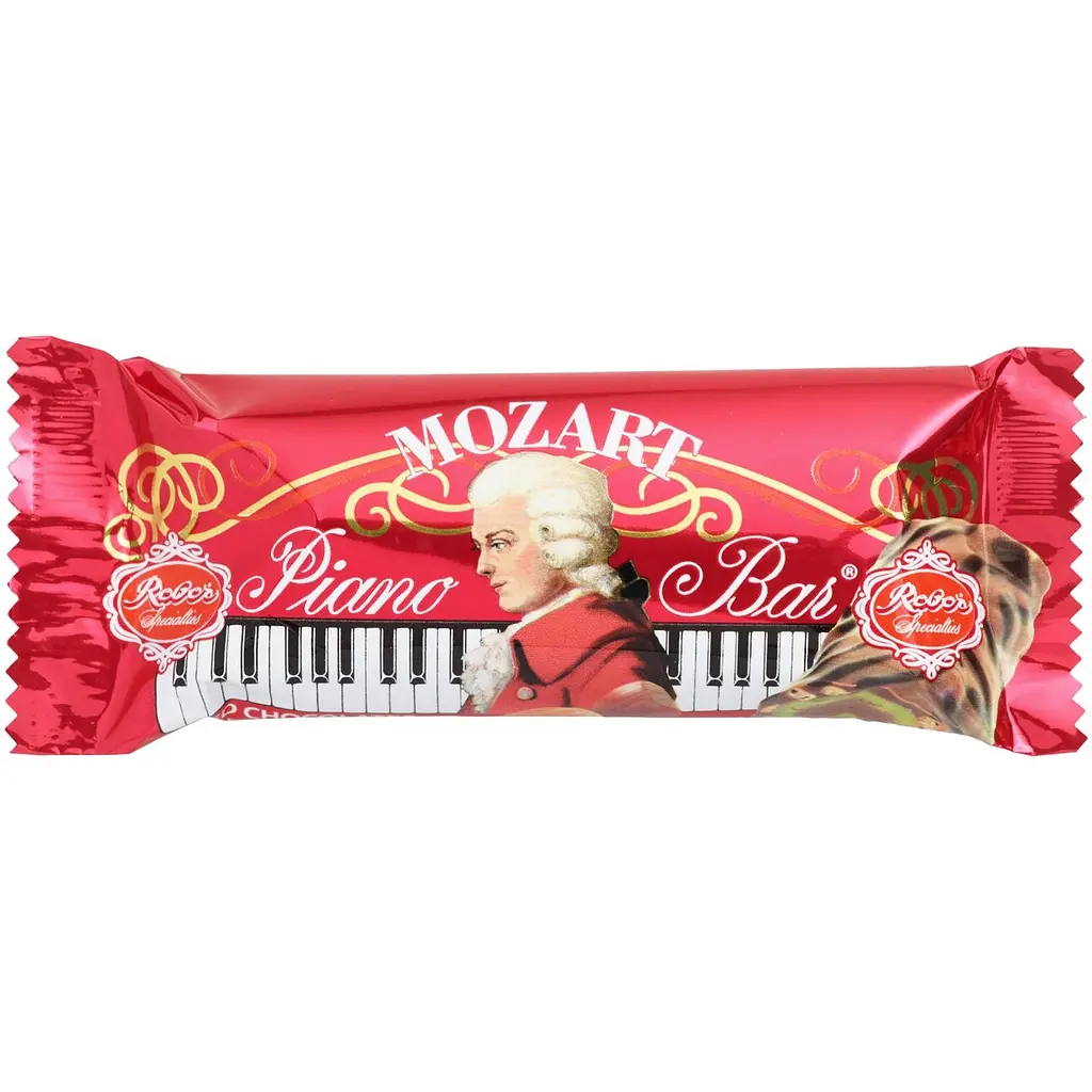 Батончик Reber Mozart Piano Bar наполнен свежими зелеными фисташками, миндалем и нежнейшим пралине из фундука в молочном шоколаде.
