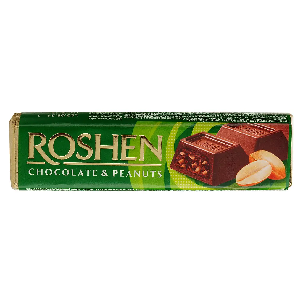 Чудовий батончик від Рошен. Якісний молочний шоколад, що тане у роті і лишає приємний післясмак. Смачна, щільна шоколадна начинка і хрусткий шар з арахісу - це дещо нове серед стандартних батончиків Рошен з рідкими начинками. Менш солодкий, ніж смак Крем-брюле чи Карамель, але в цьому його перевага. Чудово смакує як перекус чи десерт до кави. А зі знижками від Маудау - ще смачніше :)