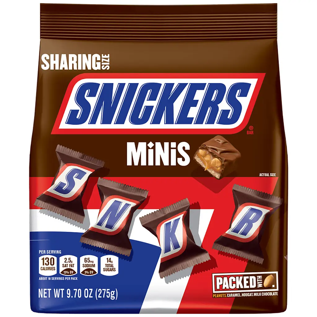 Батончики Snickers Minis Chocolate Candy Bars Bag - идеальное сочетание нуги, арахиса и карамели в шоколадно-молочной глазури для ярких вкусовых ощущений.