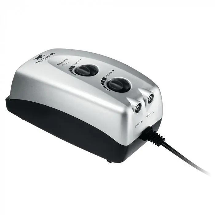 Airfizz — бесшумный компрессор для аквариумов с регулируемым потоком воды. В комплекте вы найдете силиконовый шланг (2 м) и обратный клапан. Airfizz крепится к стенке благодаря отверстию; может быть размещен в различном положении, выше или ниже уровня воды. Доступно четыре модели с одним или двумя выходными патрубками: 1 выходной патрубок для моделей Airfizz 50 и 100, два выходных патрубка для моделей Airfizz 200 и 400. Резиновые ножки на основании способствуют уменьшению вибрации. В комплекте с компрессором Airfizz мы рекомендуем вам использовать распылители air stones от компании Ferplast: их легко установить на выходные патрубки.