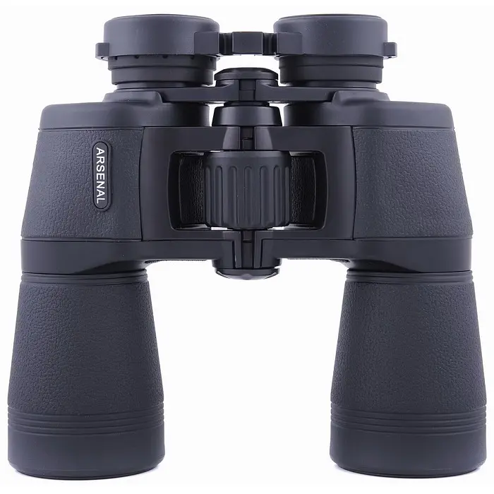 Особливості: Збільшення 12х Скляна оптика з багатошаровим покриттям Призми BK-7 Діаметр очних лінз окулярів 22 мм Захисне гумове покриття для кращого зчеплення Діоптрійна корекція для компенсації різної гостроти зору Корпус з захистом від потрапляння бризок та водяних струменів (туман, дрібний дощ, сильна злива) Можливість кріплення на штатив Porro призми М'яка якісна сумка з ременем для зберігання і транспортування Гарантія 1 рік Бінокль Arsenal NBN18-1250N простий в експлуатації, має дуже пристойну механіку, дає гарне зображення, виправдане співвідношення ціна / якість. У комплектації варто відзначити вельми незвичайні кришки для об'єктивів. Вони внутрішні і мають розрізні петлі, що дозволяє легко закріпити їх на шийному ремінці. Окулярна кришка також забезпечена петлями і може бути легко закріплена на шийному ремінці. Корпус бінокля має традиційні обводи, без ламаних ліній. Він практично повністю виконаний з міцного полікарбонату. Виняток становлять лише елементи центральної балки бінокля, призмених блоків і механізму фокусування. Колір бінокля темно-сірий, практично чорний. Тубуси і призматичні блоки бінокля покриті декоративними гумовими накладками аналогічного відтінку. Гумове покриття бінокля досить приємне на дотик і має текстурну поверхню, що імітує шкіру. Серед деталей корпусу бінокля варто відзначити вушка для фіксації шийного ремінця і металеве гніздо кріплення штативного L-адаптера, закрите зручною декоративною кришечкою, що загвинчується. У бінокля є якісно виконана шкала міжвісьових відстаней. Діапазон регулювання даної відстані (IPD) цілком класичний і змінюється в межах від 58 до 72 мм. Бінокль виконаний за класичною оптичної схемою Porro із застосуванням призм типу ВК-7. Його об'єктиви покриті блакитно-ліловим двошаровим покриттям типу MC (multi-coated) на основі фториду магнію (MgF). На поверхні лінз окулярів нанесене блакитно-бузкове просвітлююче покриття, аналогічне покриттю на об'єктивах. Призми приладу просвітлені аналогічним чином і частково оснащені світлозахисними кришками. Фокусування бінокля - центральне. Коліщатко фокусування широке, пластикове діаметром 34 мм, з гумовим покриттям і радіальною накаткою. Розташування вузла зручне, хід плавний. Діапазон налаштування укладається у півтора оберти коліщатка. Це гарантує, що процес наведення на різкість буде вельми інформативний і точний. Діоптрійне регулювання під особливості зору спостерігача проводиться обертанням правого окуляра. Для зручності налаштування на корпус окуляра нанесена відповідна розмітка, а на гумове покриття - накатка. Діапазон діоптрійного налаштування становить +/- 5 діоптрій. Бінокль показує хорошу передачу кольору. Зображення досить різке. Сума споживчих характеристик бінокля дозволяє з упевненістю говорити про те, що він буде досить хорошим придбанням.