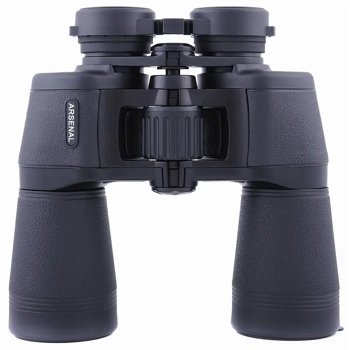 Особливості: Збільшення 16х Скляна оптика з багатошаровим покриттям Призми BK-7 Діаметр очних лінз окулярів 22 мм Захисне гумове покриття для кращого зчеплення Діоптрійна корекція для компенсації різної гостроти зору Корпус з захистом від потрапляння бризок та водяних струменів (туман, дрібний дощ, сильна злива) Можливість кріплення на штатив Porro призми М'яка якісна сумка з ременем для зберігання і транспортування Гарантія 1 рік Бінокль Arsenal NBN18-1650 - досить цікава модель, адресована, насамперед тим, кому в процесі спостережень необхідний великий масштаб зображення, але при цьому немає можливості (бажання) користуватися штативом. У комплектації варто відзначити вельми незвичайні кришки для об'єктивів. Вони внутрішні і мають розрізні петлі, що дозволяє легко закріпити їх на шийному ремінці. Окулярна кришка також забезпечена петлями і може бути легко закріплена на шийному ремінці. Корпус бінокля має традиційні обводи, без ламаних ліній. Він практично повністю виконаний з міцного полікарбонату. Виняток становлять лише елементи центральної балки бінокля, призмених блоків і механізму фокусування. Колір бінокля темно-сірий, практично чорний. Тубуси і призматичні блоки бінокля покриті декоративними гумовими накладками аналогічного відтінку. Гумове покриття бінокля досить приємне на дотик і має текстурну поверхню, що імітує шкіру. Серед деталей корпусу бінокля варто відзначити вушка для фіксації шийного ремінця і металеве гніздо кріплення штативного L-адаптера, закрите зручною декоративною кришечкою, яка загвинчується. У бінокля є якісно виконана шкала міжосьових відстаней. Діапазон регулювання цієї відстані (IPD) цілком класичний і змінюється в межах від 58 до 72 мм. Бінокль виконаний за класичною оптичної схемою Porro із застосуванням призм типу ВК-7. Його об'єктиви покриті блакитно-ліловим двошаровим покриттям типу MC (multi-coated) на основі фториду магнію (MgF). Окуляри бінокля (типу Ерфле) мають винос зіниці близько 12 мм. Діаметр очних лінз окулярів 18 мм, а діаметр вихідної зіниці приблизно 3 мм. Наочники на окулярах бінокля виконані з м'якої гуми і мають висоту 5 мм. На поверхні лінз окулярів нанесено блакитно-бузкове просвітлююче покриття, аналогічне покриттю на об'єктивах. Призми приладу просвітлені аналогічним чином і частково оснащені світлозахисними кришками. Фокусування бінокля - центральне. Коліщатко фокусування широке, пластикове діаметром 34 мм, з гумовим покриттям і радіальною накаткою. Розташування вузла зручне, хід плавний. Діапазон налаштування укладається у півтора оберти коліщатка. Це гарантує, що процес наведення на різкість буде вельми інформативний і точний. Мінімальна дистанція фокусування бінокля становить 6 метрів. Діоптрійне регулювання під особливості зору спостерігача проводиться обертанням правого окуляра. Для зручності налаштування на корпус окуляру нанесена відповідна розмітка, а на гумове покриття - накатка. Діапазон діоптрійного налаштування становить +/- 4 діоптрії. Бінокль показує хорошу передачу кольору. Зображення досить різке. Поле зору бінокля становить 72 м на 1000 м (близько 4,1 градусів), що є гарним показником для приладу, що має досить велике збільшення. В цілому ж, бінокль простий в експлуатації, має дуже пристойну механіку, дає гарне зображення, виправдане співвідношення ціна / якість. Сума спожив