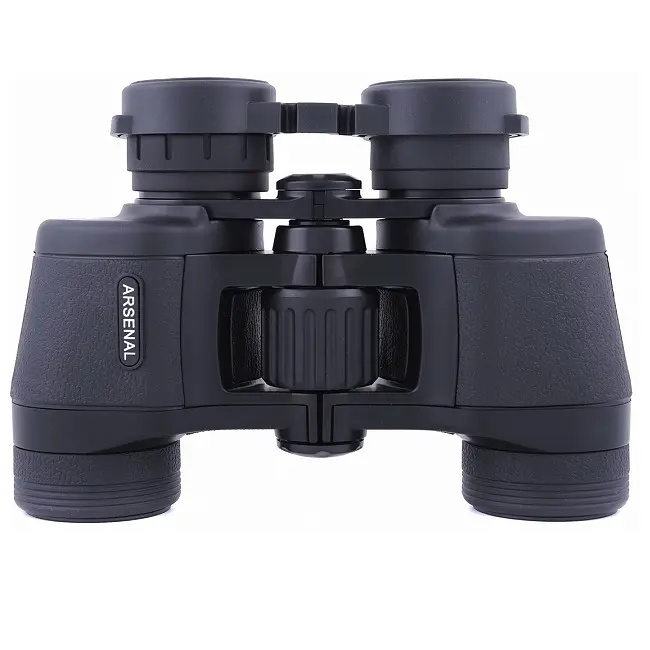 Особливості: Збільшення 7х Скляна оптика з багатошаровим покриттям Призми BK-7 Діаметр очних лінз окулярів 22 мм Захисне гумове покриття для кращого зчеплення Діоптрійна корекція для компенсації різної гостроти зору Корпус з захистом від потрапляння бризок та водяних струменів (туман, дрібний дощ, сильна злива) Можливість кріплення на штатив Porro призми М'яка якісна сумка з ременем для зберігання і транспортування Гарантія 1 рік Бінокль Arsenal NBN18-0735N простий в експлуатації, має дуже пристойну механіку, дає гарне зображення, виправдане співвідношення ціна / якість. У комплектації варто відзначити вельми незвичайні кришки для об'єктивів. Вони внутрішні і мають розрізні петлі, що дозволяє легко закріпити їх на шийному ремінці. Окулярна кришка також забезпечена петлями і може бути легко закріплена на шийному ремінці. Корпус бінокля має традиційні обводи, без ламаних ліній. Він практично повністю виконаний з міцного полікарбонату. Виняток становлять лише елементи центральної балки бінокля, призменних блоків і механізму фокусування. Колір бінокля темно-сірий, практично чорний. Тубуси і призматичні блоки бінокля покриті декоративними гумовими накладками аналогічного відтінку. Гумове покриття бінокля досить приємне на дотик і має текстурну поверхню, що імітує шкіру. Серед деталей корпусу бінокля варто відзначити вушка для фіксації шийного ремінця і металеве гніздо кріплення штативного L-адаптера, закрите зручною декоративною кришечкою, що загвинчується. У бінокля є якісно виконана шкала міжвісьових відстаней. Діапазон регулювання даної відстані (IPD) цілком класичний і змінюється в межах від 58 до 72мм. Бінокль виконаний за класичною оптичної схемою Porro із застосуванням призм типу ВК-7. Його об'єктиви покриті блакитно-ліловим двошаровим покриттям типу MC (multi-coated) на основі фториду магнію (MgF). Окуляри бінокля мають винос зіниці близько 20 мм. Діаметр очних лінз окулярів 23 мм. Наочники на окулярах бінокля виконані з м'якої гуми і мають висоту 10 мм. На поверхні лінз окулярів нанесене блакитно-бузкове просвітлююче покриття, аналогічне покриттю на об'єктивах. Призми приладу просвітлені аналогічним чином і частково оснащені світлозахисними кришками. Фокусування бінокля - центральне. Коліщатко фокусування широке, пластикове діаметром 34 мм, з гумовим покриттям і радіальною накаткою. Розташування вузла зручне, хід плавний. Діапазон налаштування укладається у півтора оберти коліщатка. Це гарантує, що процес наведення на різкість буде вельми інформативний і точний. Мінімальна дистанція фокусування бінокля становить 3 метри. Діоптрійне регулювання під особливості зору спостерігача проводиться обертанням правого окуляра. Для зручності налаштування на корпус окуляра нанесена відповідна розмітка, а на гумове покриття - накатка. Діапазон діоптрійного налаштування становить +/- 5 діоптрій. Бінокль показує хорошу передачу кольору. Зображення досить різке. Поле зору бінокля становить 163 м на 1000 м (близько 9,3 градусів). Сума споживчих характеристик бінокля дозволяє з упевненістю говорити про те, що він буде досить хорошим придбанням.