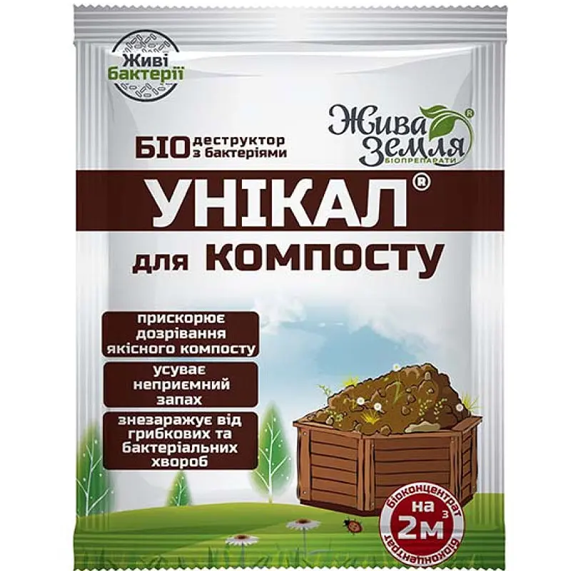 Биодеструктор Уникал – это биопрепарат-деструктор с комплексом эффективных микроорганизмов и ферментов для ускорения переработки органических отходов в качественный компост. Ферменты, входящие в состав биодеструктора, способствуют быстрому разложению органических отходов, а полезные микроорганизмы уничтожают возбудители грибных и бактериальных заболеваний.