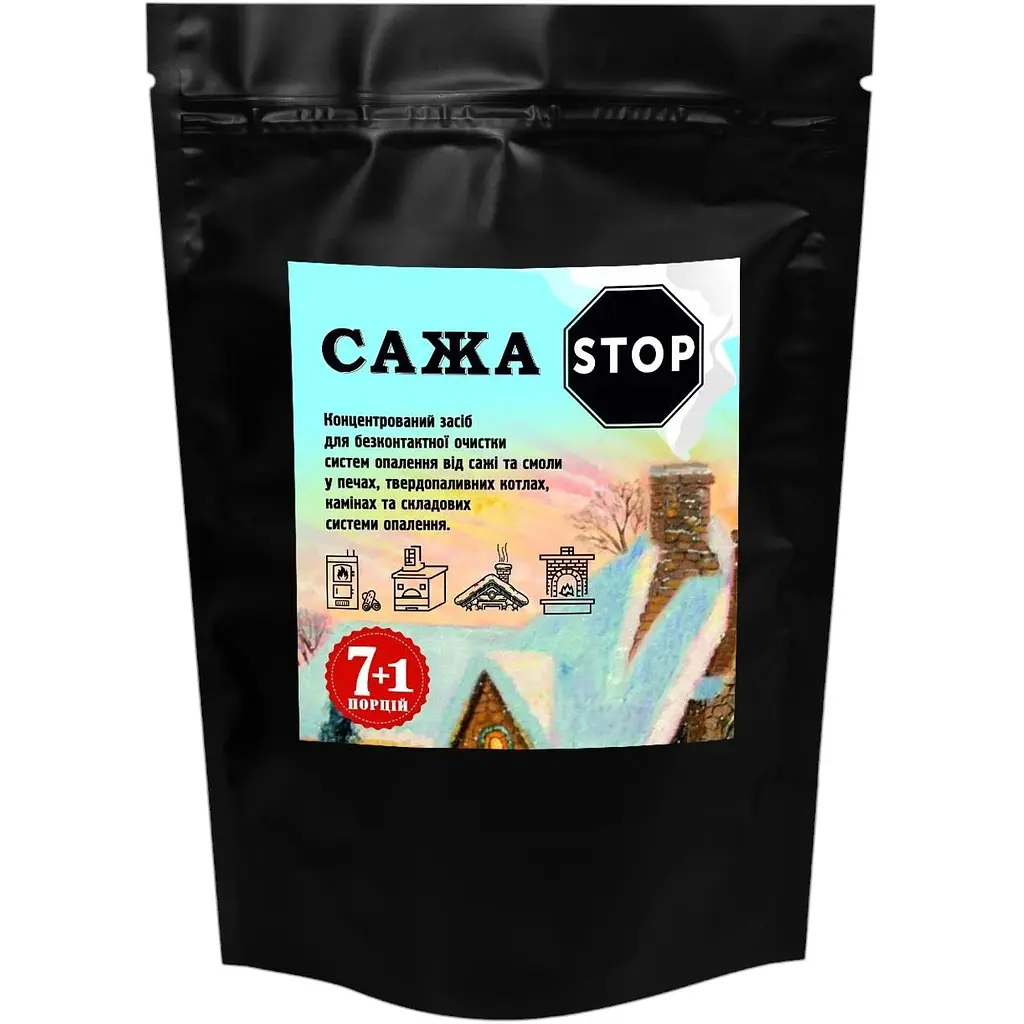 Внимание! Не использовать средство до приготовления пищи в печи, камине. В случае сильного загрязнения дымохода, использование Сажа Stop может вызвать воспламенение смол в дымоходе! Продукт соответствует требованиям ДСТУ 7282:2012.