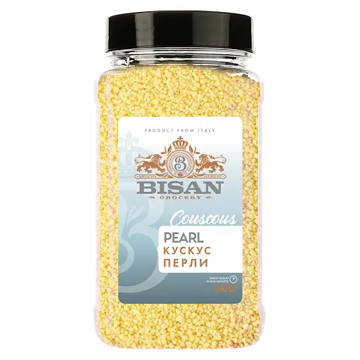 Кускус Bisan Жемчуг - это крупа из пшеницы, которая имеет мелкую зернистую структуру в виде маленьких шариков, напоминающих жемчужины. Ее изготовляют из грубой манной крупы, которую формируют в небольшие шарики и высушивают. Это традиционный продукт стран Магриба (Северной Африки), который используется в качестве основы для многих блюд.