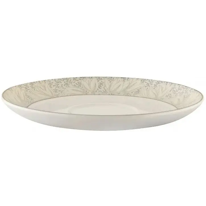 Блюдце с цветочным орнаментом по краю. Диаметр составляет 155 мм. Чайное блюдце - традиционная посуда для чаепития. Блюдце нужно не только для того, чтобы чай из чашки не капал на скатерть. Оно может стать и миниатюрной тарелочкой для выпечки, конфет или других сладостей. Изготовлено блюдце из костяного фарфора. Впервые костяной фарфор появился еще в древнем Китае, где за особые свойства - тонкость, которая достигала прозрачности - его назвали яичной скорлупой. Китайцы берегли свой секрет, и в Европе его пришлось изобретать заново. Здесь его прозвали королевским фарфором и белым золотом, и не зря, ведь изделия из костяного фарфора отличаются благородным белым цветом и особым звучанием. В чем же секрет? Он чрезвычайно прост. Костяной фарфор не зря так называется, в него добавляют костную золу животного происхождения. Это абсолютно натуральное сырье, безопасное для здоровья человека. Именно костная зола наделяет фарфоровые изделия уникальными свойствами.