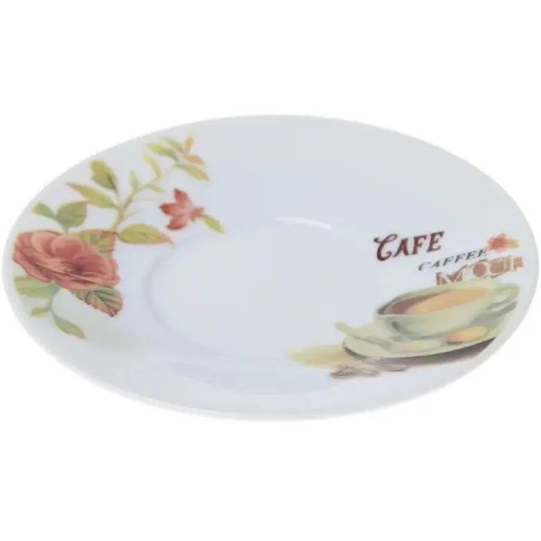 Блюдце NP88PL/160 изготовлено из фарфора - одного из самых популярных материалов для производства посуды. В качестве декора использован рисунок в пастельных тонах. На нем изображены цветущие цветы и стоит дымящаяся кофейная чашка. Такое блюдце создано для теплых вечеров в кругу близких людей. Его можно ставить под чашку, чтобы не испачкать скатерть случайно пролитой каплей, или использовать вместо десертной тарелки. Диаметр блюдца - 12 см.