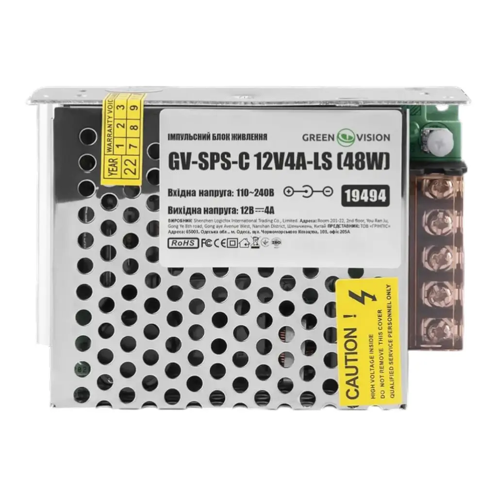 До конца акции 158 днейБлок питания со встроенным регулятором входного напряжения GV-SPS-C 12V4A-LS (48W) имеет импульсный вход 110-240 В, и дает на выходе следующие параметры электрического тока 12 В / 4А (48W).