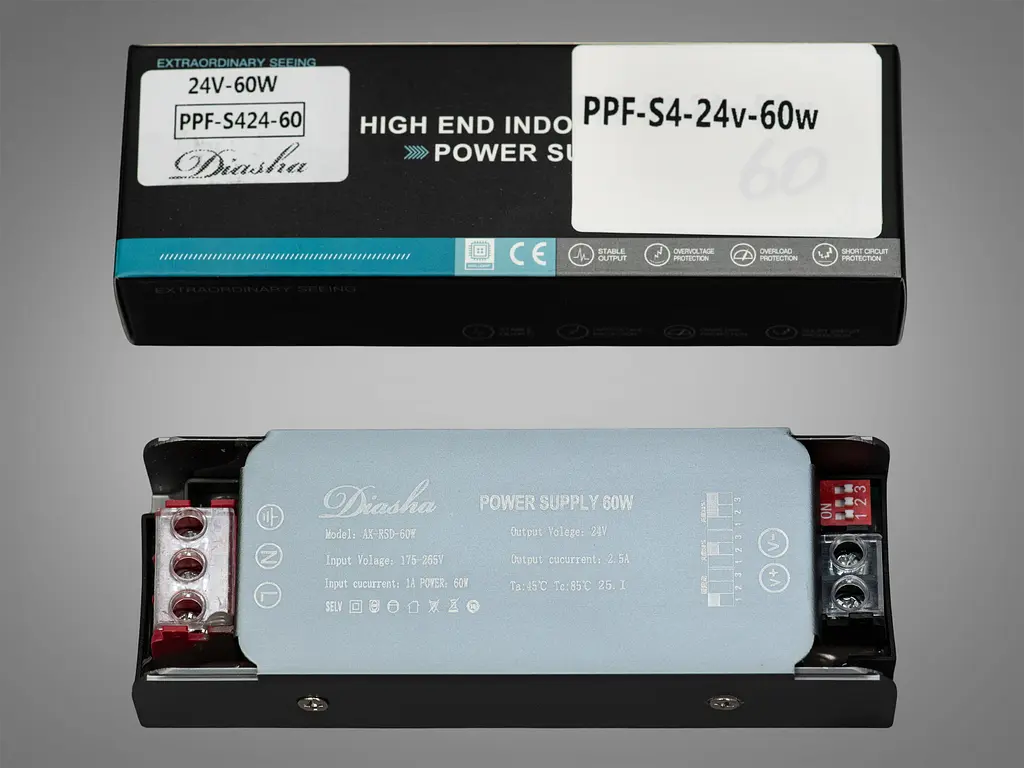 Блок питания с плавным включением и регулировкой яркости PPF-S4-24V-60W от ТМ "Diasha" для светодиодной ленты. В проектах, где важны точность освещения и контроль яркости, особое значение имеет блок питания для светодиодной ленты с расширенным функционалом. Модель PPF-S4-24V-60W от ТМ "Diasha" — это удачное сочетание компактности, стабильности и управления в одном корпусе.