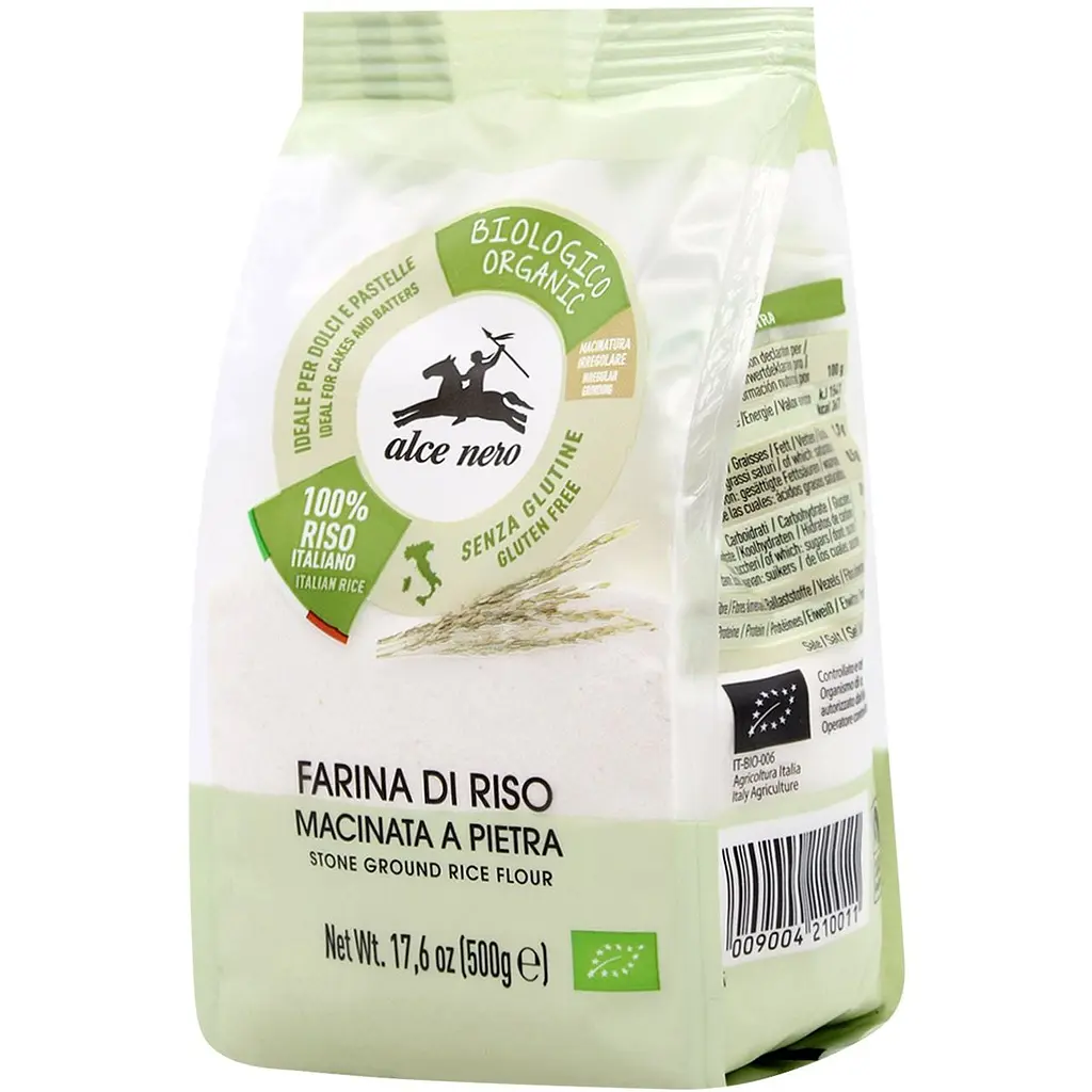 Мука рисовая органическая Alce Nero получается путем каменного помола органического риса, выращенного в Италии. Идеально подходит для больных целиакией, поскольку не содержит глютена, рекомендовано для приготовления кляра и панировки.