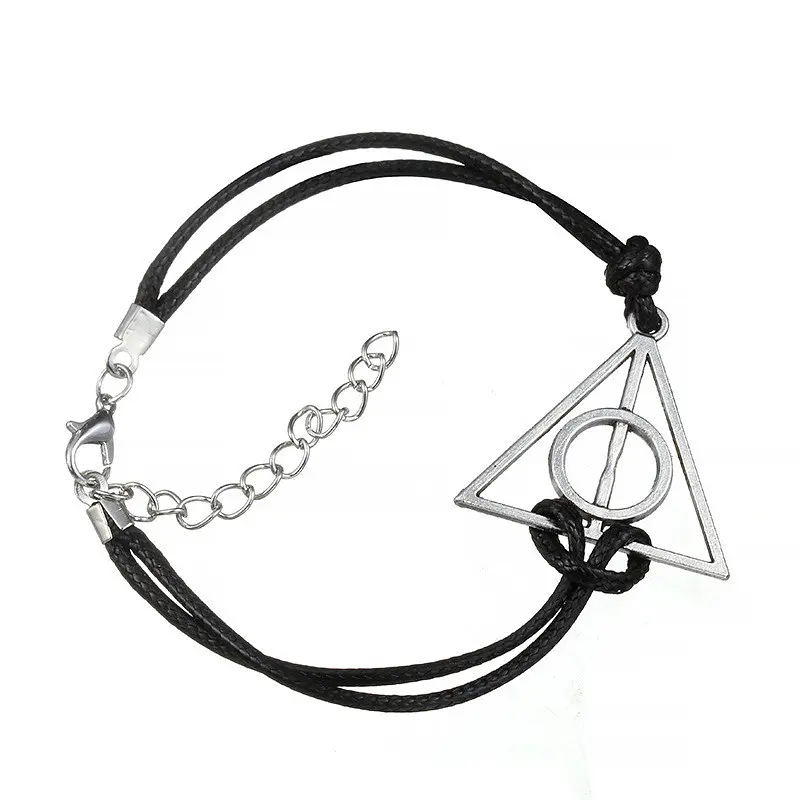 Покажите свою любовь к волшебному миру с этим элегантным браслетом, украшенным символом Даров Смерти. Легкий, стильный и универсальный, он станет прекрасным дополнением к любому образу, будь то повседневный стиль или тематическое мероприятие.