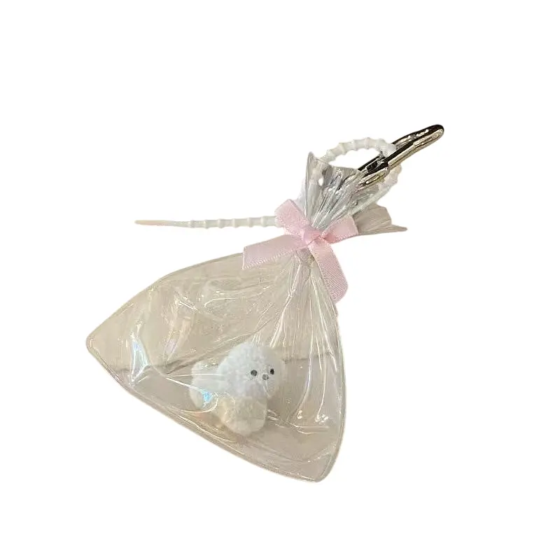 это милый и креативный аксессуар, который станет яркой изюминкой вашего стиля. Миниатюрный пёсик, помещённый в прозрачный пакет с розовым бантиком, выглядит очень трогательно и необычно. Такой брелок идеально подойдёт для украшения ключей, рюкзака, сумки или даже как элемент декора в интерьере.