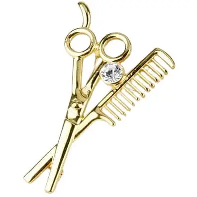 Тематическая брошь в виде ножниц и расчески создана специально для мастеров своего дела, для парикмахеров и стилистов. Она отлично дополнит модный или рабочий образ и подчеркнет вашу индивидуальность. Материал: сплав Размер: 64*40мм.