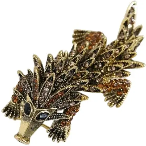 Красивая, оригинальная брошь в виде панголины, состоит из трех подвижных частей со стразами. Брошь декоративная, прекрасит любую одежду. Классическая застежка – булавка, практичная и удобная в использовании.Есть петля для подвески. Размер: 66*28мм.