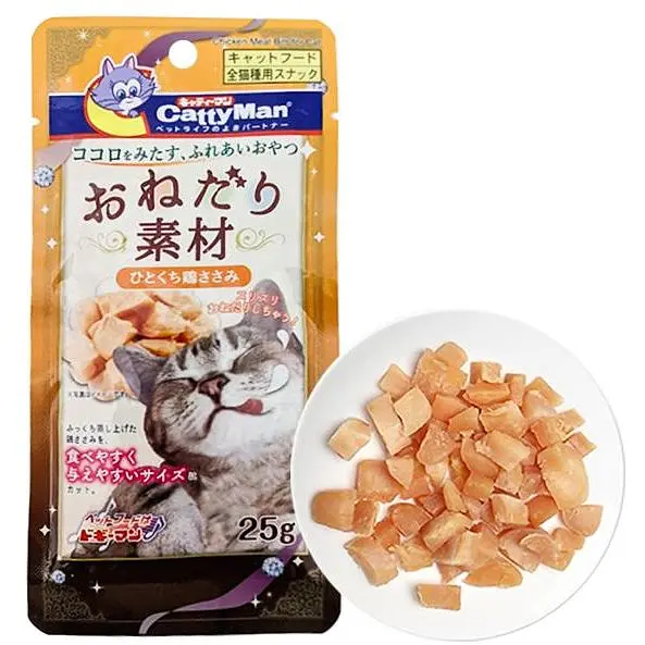 Лакомство для котов CattyMan Chicken Meat Bits – вкуснейшие кубики из мяса курицы, которые заботливо приготовлены на пару, чтобы блюдо получилось ароматным и мягким. Никаких злаков – чистый протеин для домашнего хищника. Ваш питомец непременно оценит это полезное угощение громким одобрительным мурчанием и моментальным опустошением миски!