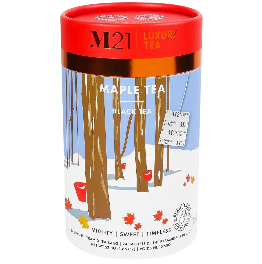 До конца акции 35 днейЧай черный M21 Maple - это высококачественный черный чай с добавлением кленового сиропа и натуральных ароматизаторов, имеющих органический сертификат. Он производится компанией Metropolitan Tea Company в Канаде и является частью линейки M21 Luxury Tea. Чай упакован в 100% растительные компостированные пирамидальные пакетики и хранится в модифицированной атмосфере для обеспечения длительного срока годности. Каждая упаковка содержит 24 пакетика чая.