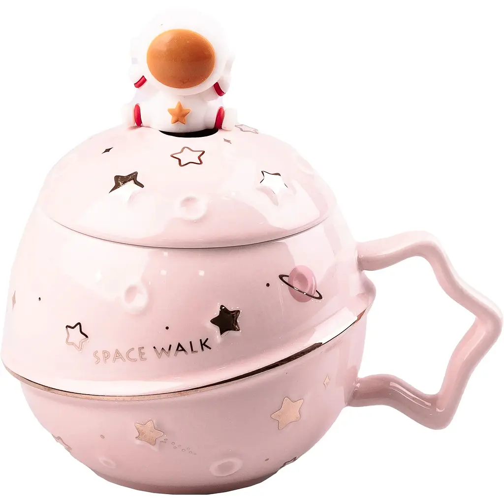 Чашка, от которой будут в восторге и дети, и взрослые. Именно так можно сказать об этой симпатичной круглой керамической кружке, выполненной в виде планеты с объемной фигуркой астронавта, которая венчает чайную ложечку.