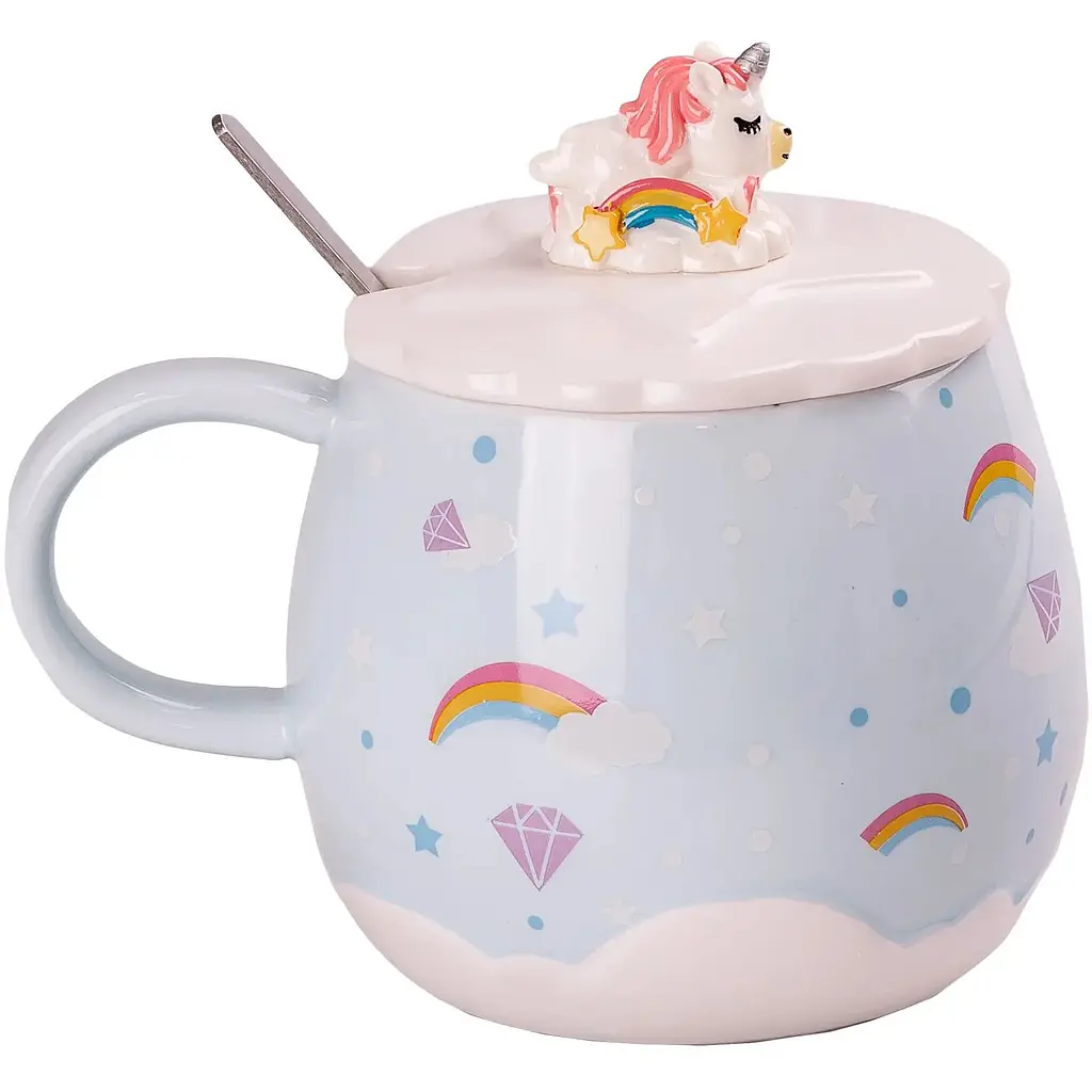 Чашка имеет индивидуальный рисунок, на крышечке расположена объемная фигурка единорога, которая одновременно служит не нагревающейся ручкой. Такая кружечка приведет в восторг любую представительницу прекрасного пола и станет неотъемлемой частью повседневной жизни.