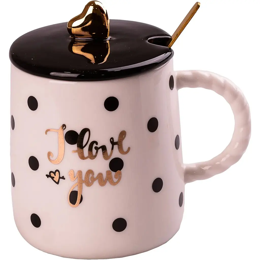 Такая оригинальная керамическая чашка - отличный вариант и для домашнего использования, и как презент для молодой романтической девушки. В дизайне использованы контрастные цвета и лаконичное оформление, благодаря чему кружка впишется в любой кухонный интерьер.