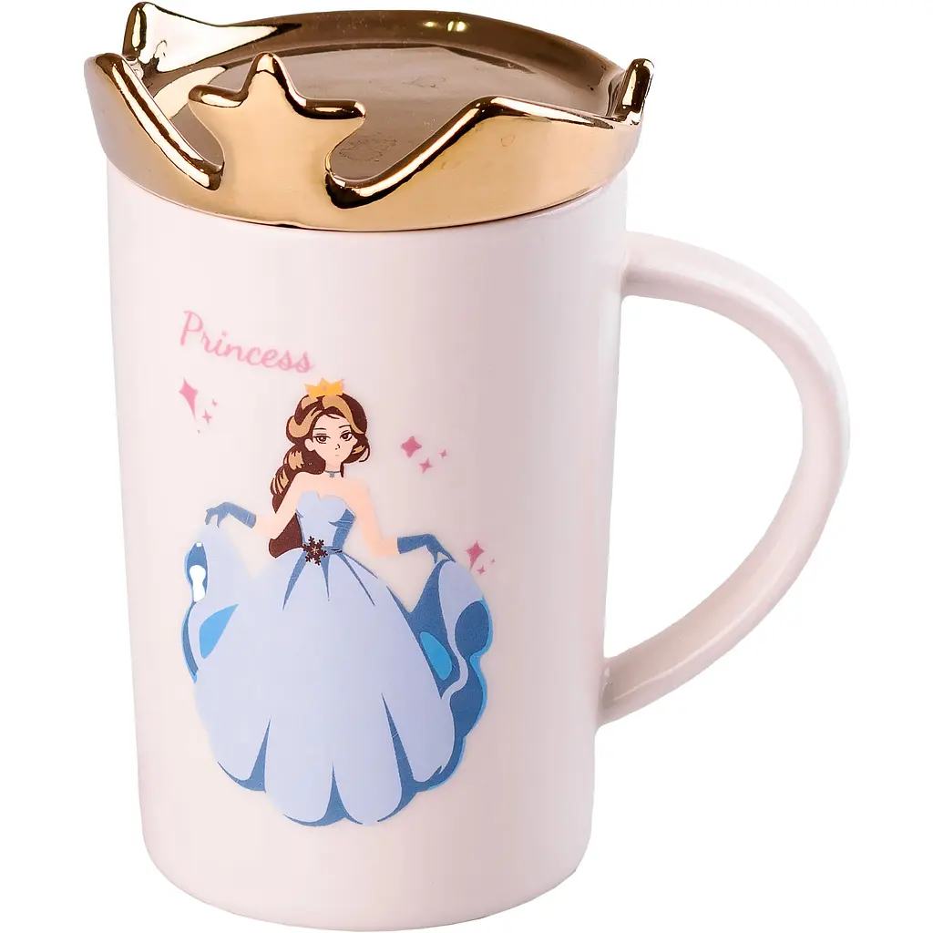 Чашка имеет крышечку в виде короны, которая одновременно может выполнять роль блюдца. Такая кружечка приведет в восторг любую представительницу прекрасного пола и станет неотъемлемой частью повседневной жизни.