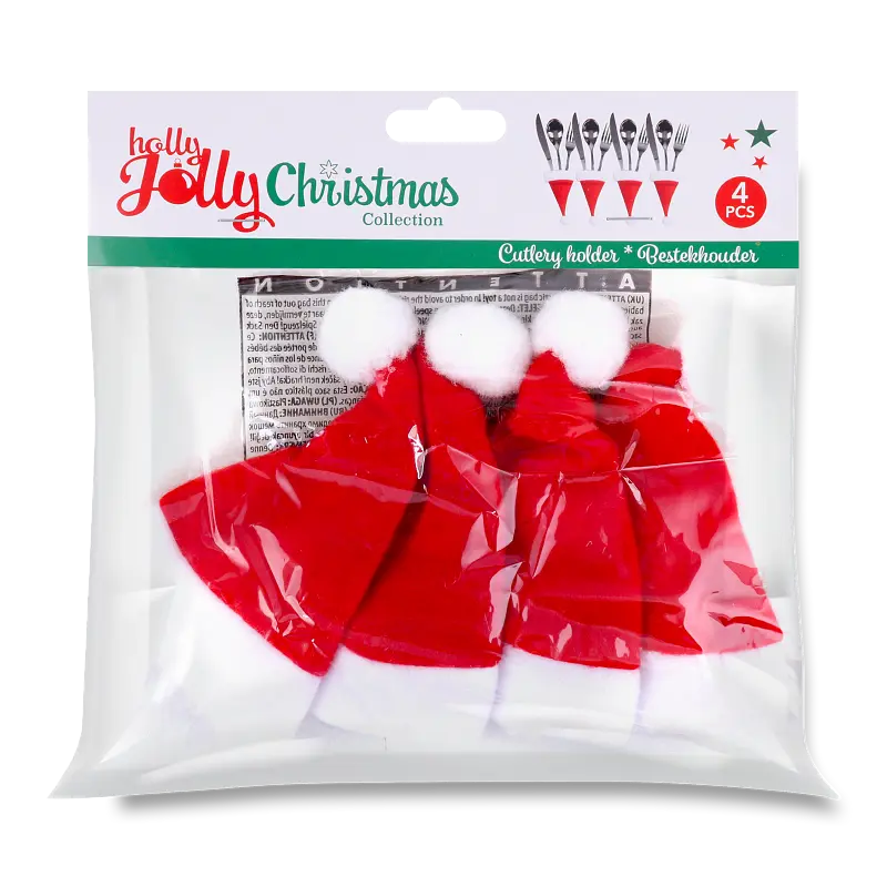Чехлы для столовых приборов Holly Jolly (Холли Джолли) Дед Мороз станет отличным дополнением праздничного стола.