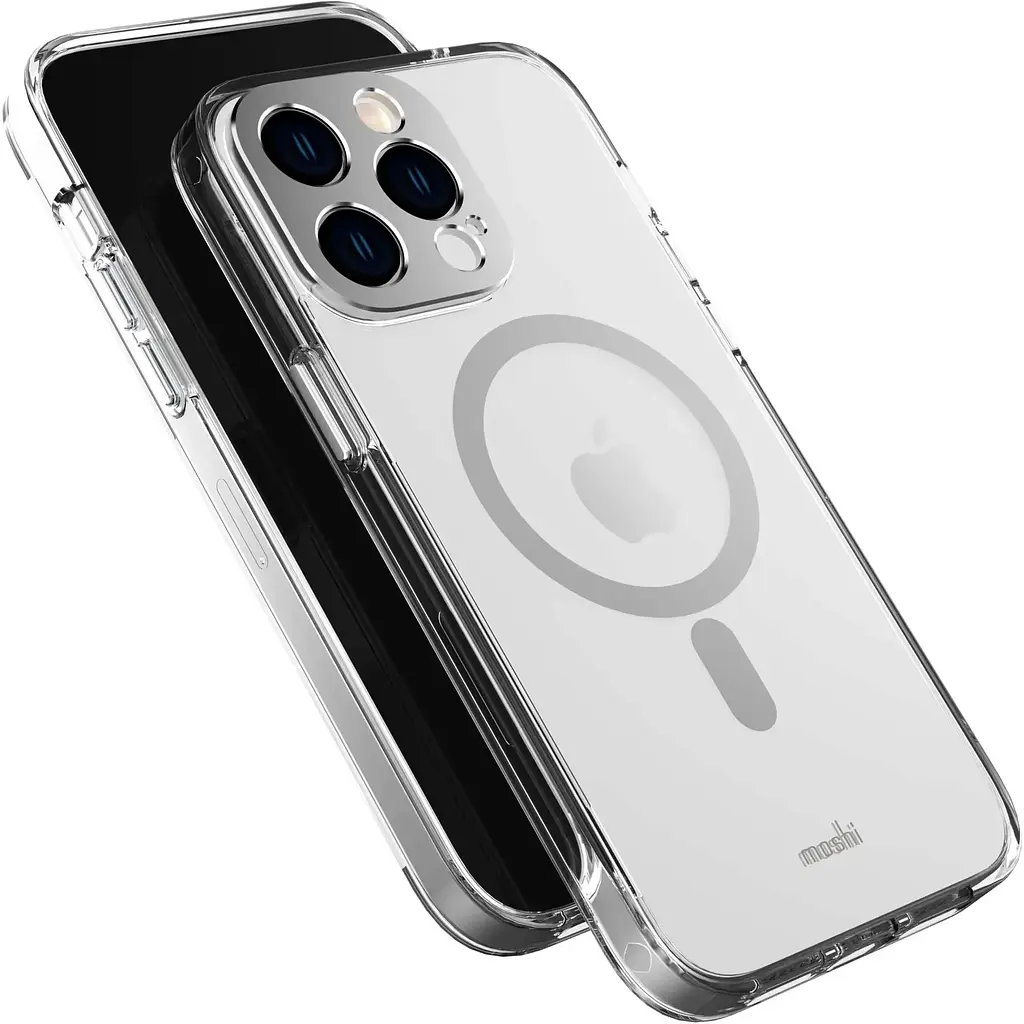 Гибридный защитный чехол Moshi iGlaze в версии MagSafe из ультрапрозрачного и крепкого поликарбоната. Новый iGlaze улучшен прозрачным трехслойным покрытием, которое предотвращает пожелтение. Встроенное кольцо с высококачественными магнитами обеспечивает быструю зарядку с помощью зарядного устройства MagSafe и отличное сцепление аксессуаров (например, кошелька, беспроводного павербанка или автомобильного держателя). Чехол также оснащен алюминиевым корпусом для островка камеры, защищающим объективы камеры. Интегрированные кнопки громкости и кнопка пробуждения обеспечивают эффективную работу всех функций телефона, ограничивая попадание грязи в корпус.