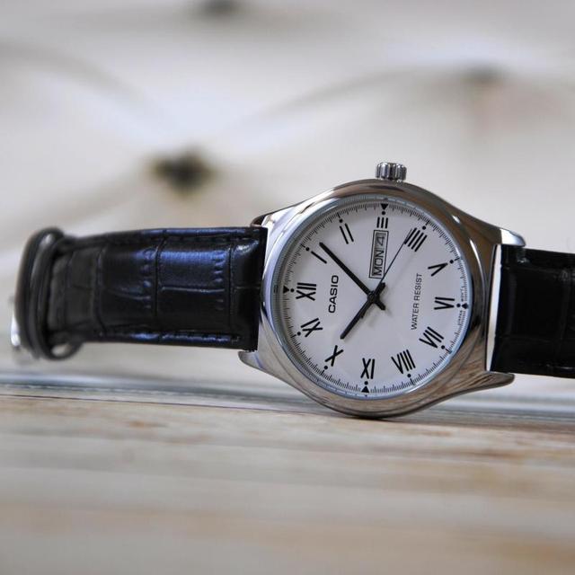 Сборка данной модели производилась на сертифицированном заводе Casio, который находится в Китае. Корпус выполнен из стали. Черный кожаный ремешок. Циферблат - белый. Индикация - римские цифры. Приблизительный срок службы аккумулятора 2 года. Застежка застежка ремешка-пряжка.